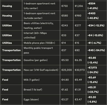 Transportation: Public transport 55% cheaper, fuel 13% cheaper
